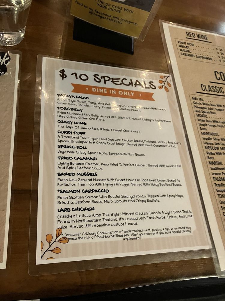 Welcome to Bangkok Street Thai Street Kitchen, a trendy and casual spot in Las Vegas that offers a wide range of Thai cuisine. From small bites like Baked Mussels and Chicken Satay to hearty soups and salads like Beef Noodle Soup and Thai Beef Salad, there's something for everyone. The curries here are a must-try, with options like Green Curry and Panang Ribeye Steak. The menu also features vegan and vegetarian options, making it inclusive for all diners. The restaurant offers various amenities like delivery, takeout, and outdoor seating, ensuring a comfortable dining experience. With a diverse menu and a vibrant atmosphere, Bangkok Street Thai Street Kitchen is a great choice for lunch, dinner, or even a special event. Don't miss out on the flavorful dishes and welcoming ambiance of this Thai gem.